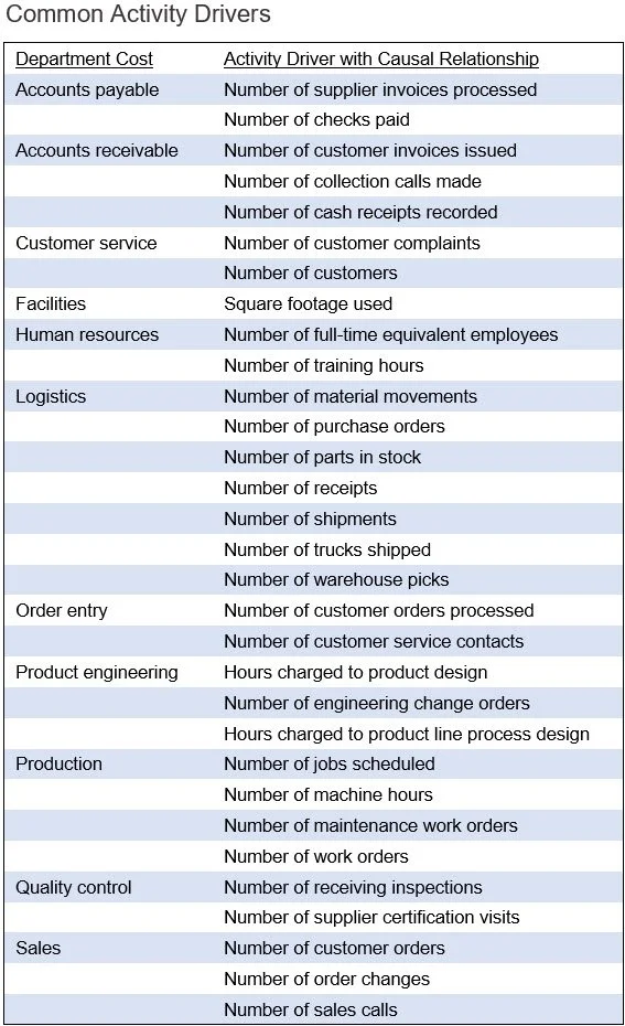 Use a data collection system to collect information about the activity drivers that are used to allocate the costs in secondary cost pools to primary cost pools, as well as to allocate the costs in primary cost pools to cost objects. It can be expensive to accumulate activity driver information, so use activity drivers for which information is already being collected, where possible. Or, if you have a choice of activity drivers, use the one for which the associated data collection cost is the lowest. The following exhibit contains a list of several of the more common activity drivers.