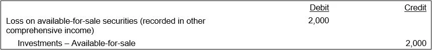 If a business has investments in debt and equity securities that are classified as available-for-sale securities, and also if the equity securities have readily determinable fair values, then subsequently record their fair values in the balance sheet. Exclude any unrealized holding gains and losses from earnings, and instead report them in other comprehensive income until they have been realized (i.e., by selling the securities to a third party).