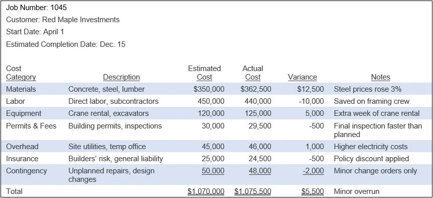 Use job costing as the primary mechanism for monitoring project performance at a granular level. A properly designed job cost system assigns all direct materials, direct labor, subcontractor charges, equipment usage, and allocated overhead to individual contracts or cost codes. This structure enables management to compare actual costs to budgeted amounts in real time and evaluate percentage of completion using reliable data. As variances emerge, project managers can investigate root causes such as labor inefficiency, material waste, or scope creep before margins deteriorate further. Detailed cost histories also create a valuable database for future estimating, allowing the company to refine its unit pricing, contingency assumptions, and bid strategies based on documented historical performance rather than unsupported assumptions.