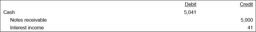 At the end of the third and final month, Arizona pays the last $5,000 increment under the terms of the note, as well as interest, which is calculated as $5,000 x 10% x 30 days/365 days = $41. The entry is: