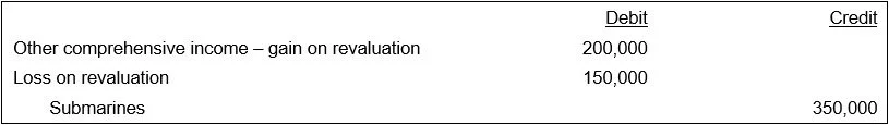 Three years later, on the next scheduled revaluation date, the appraiser reviews the fair value of the submarine, and determines that its fair value has declined by $350,000. Nautilus uses the following journal entry to record the change: