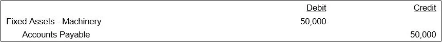 On the assumption that the asset was purchased on credit, the initial entry is a credit to accounts payable and a debit to the applicable fixed asset account for the cost of the asset. Here is an example of an initial acquisition entry for manufacturing equipment with a initial cost of $50,000: