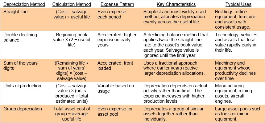The amount of the asset is gradually reduced over subsequent periods with ongoing depreciation entries, on the theory that an asset’s value will decline over an extended period of time. There are several variations on the depreciation calculation, including the straight-line, double-declining balance, and units of production methods. The characteristics and calculation methods for the most common depreciation methods are noted in the following table.