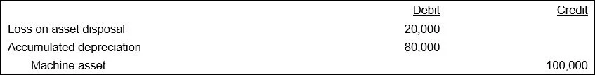 A variation on this situation is to write off a fixed asset that has not yet been completely depreciated. In this case, write off the remaining undepreciated amount of the asset to a loss account. In the following entry, an asset that originally cost $100,000 is being eliminated before $20,000 of depreciation has been recognized.