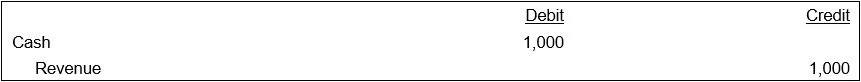 Arnold Corporation sells a product to a customer for $1,000 in cash. This results in revenue of $1,000 and cash of $1,000. Arnold must record an increase of the cash (asset) account with a debit, and an increase of the revenue account with a credit. The entry is: